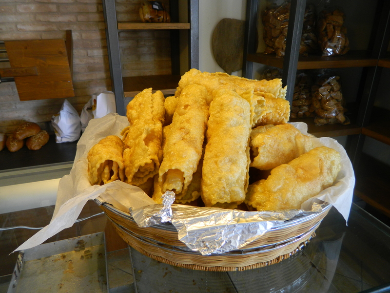 In Gytheio we found a small fantastic bakery called Sousami (in Greek: Σουσάμι) selling local pastries at really good prices. The products were super tasty and really good quality. We tried the folia (round bread filled with egg and bacon), tiganita (a local product: fried dough, delicious with graviera cheese), spanakopita (spinach pie), and paid just 3.50 Euro in total!