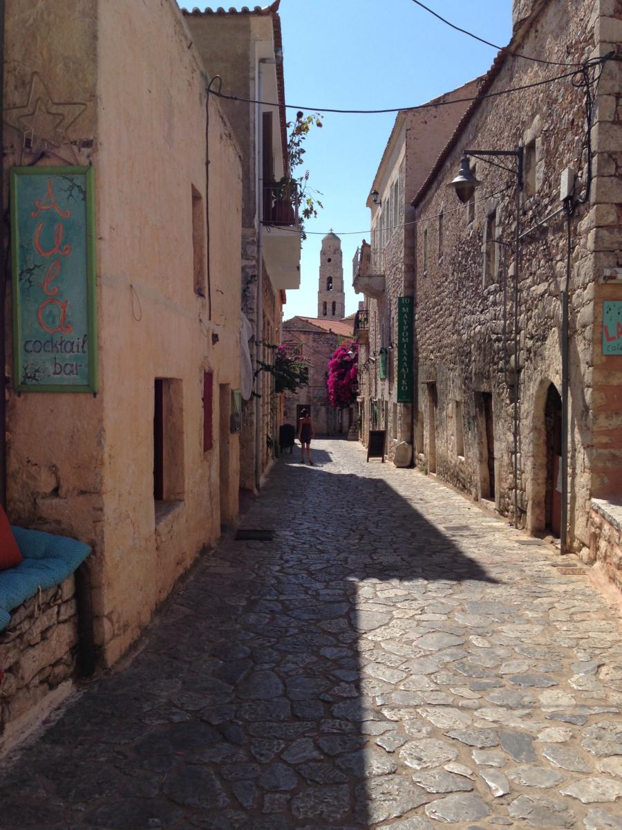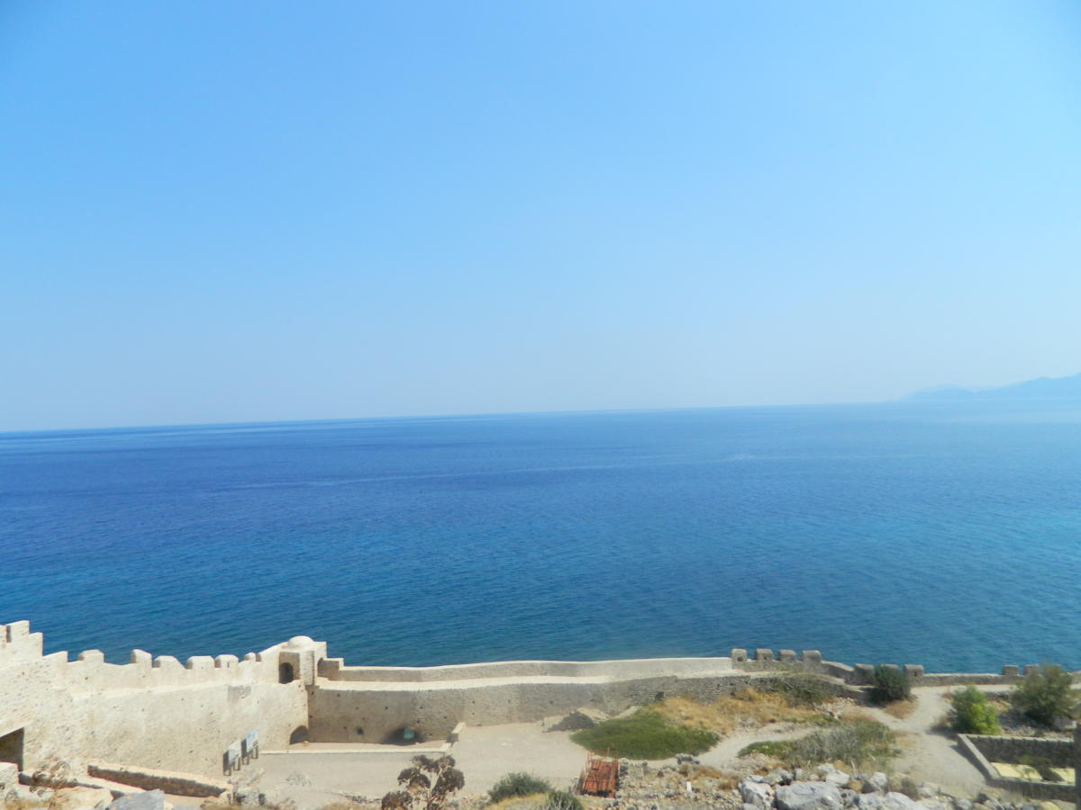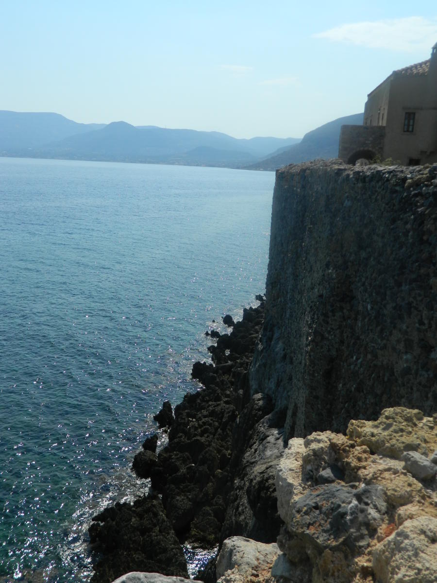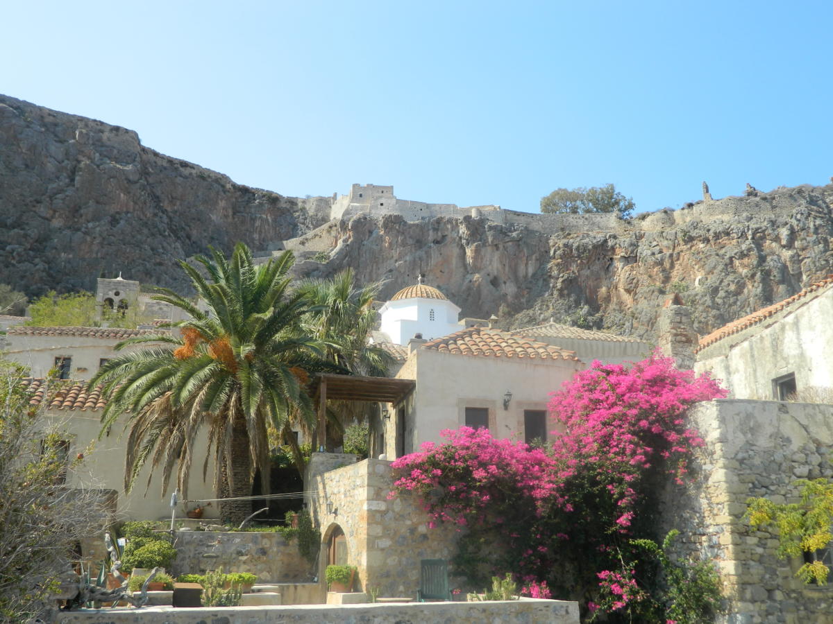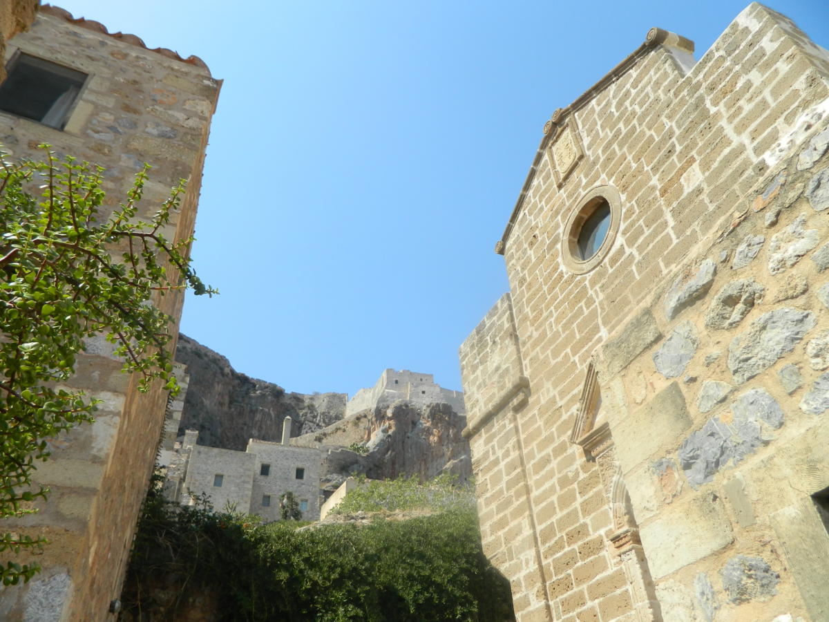 After leaving Gytheio, we moved towards Monemvasia. The town is located on a small island made from a large sea rock, which is 300 metres wide and 100 metres above sea level. The island of Monemvasia was separated from the mainland by an earthquake in 375 AD. A fortress was entirely carved on the back side of this island in the Medieval times, in order to keep it hidden from the mainland, protecting the locals from enemy attacks. The only way to reach Monemvasia was by boat, until later on when a paved pathway was constructed to connect the castle entrance to mainland Greece. Monemvasia has stunning sea views (the one from the castle top is breathtaking) and there are many Byzantine churches from the medieval period.