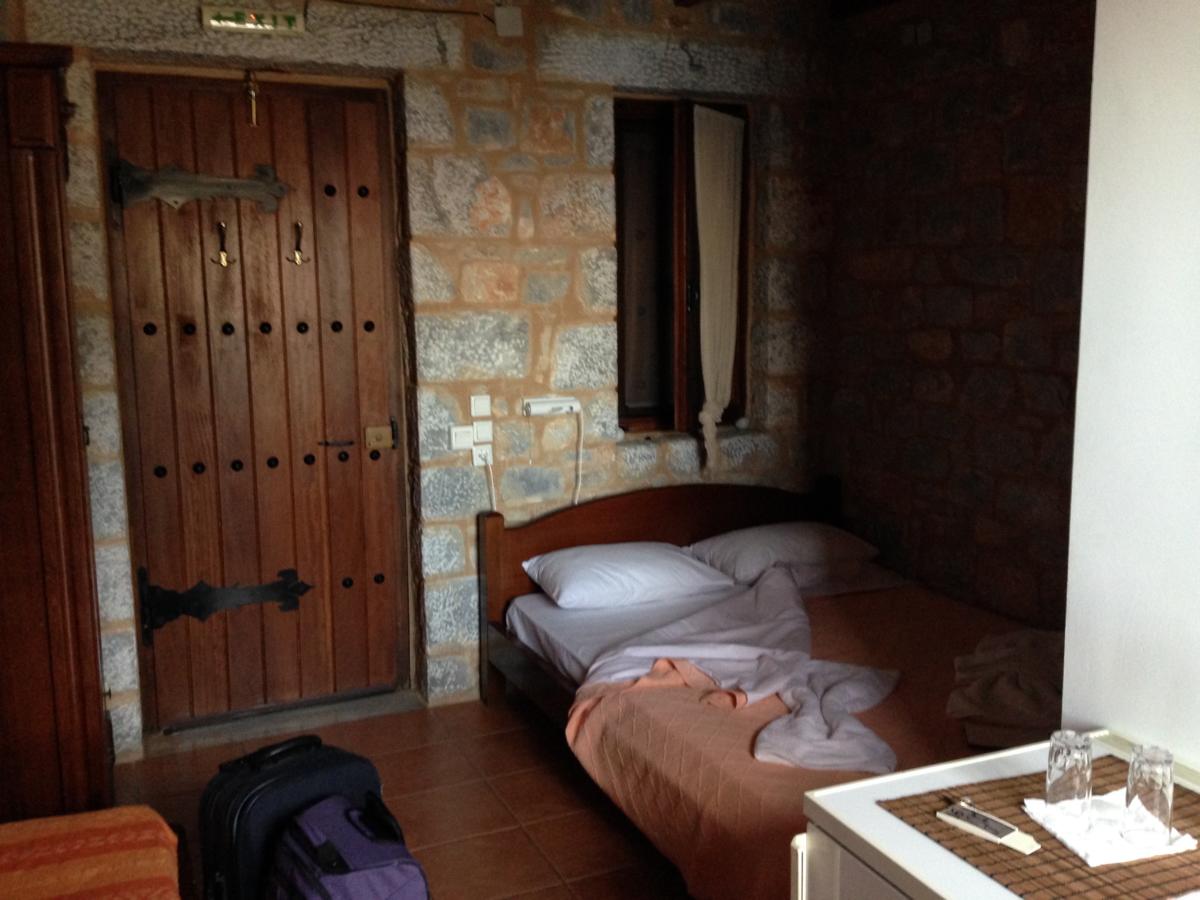 Our first destination was the southern part of the 2nd leg of Peloponnese – Mani. We found an amazing hotel in Exo Nimfion (Lalloudes), located right in front of the sea, and only 10 minutes distance from Kotronas and 20 mins from Areopoli. Hotel Lalloudes (find Lalloudes on Tripadvisor) is a perfect spot for investigating the area. It was build in the style of traditional Mani stone houses, which look sort of like small towers. The hotel has an amazing private beach with crystal-clear water, a comfortable pool with a chilling area, a bar next to the pool offering both drinks and food/snacks, and a restaurant on the sea front. Lalloudes is a family hotel, run by the lovely Manolakos: Mr Dimitri and Mrs Kaky, and their two daughters, Kelly and Lila. The hotel has 20 rooms, decorated with traditional local furniture. Some of them also have large terraces (like ours – see below), from which you can enjoy a breathtaking sea view.